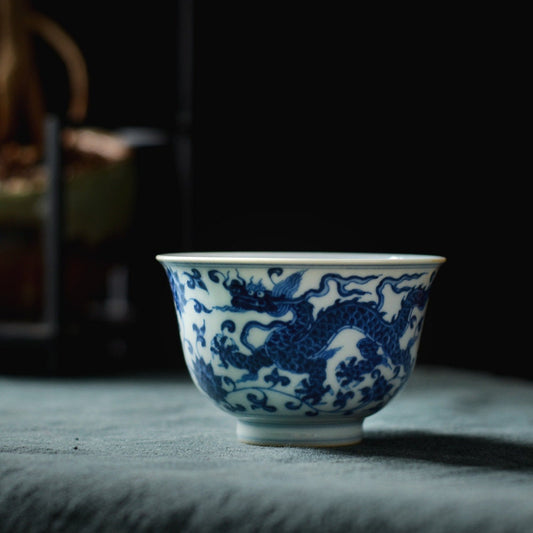 Dragon Phoenix Chinese Tea Cup (150ml/5oz), Handmade Kung Fu Tea Cup, Ming Qing Fanggu Style Porcelain Tea Cup - Gongfu Tea Lover Collection