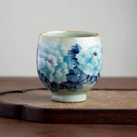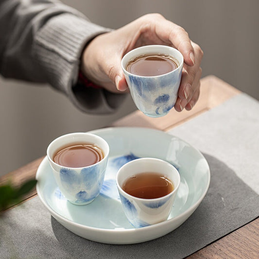 Wood-Fired Kiln Blue White Pu-erh Tea Cup 70ml /2.5oz, Hand Painted Gongfu Tea Cup, Chinese tea Cup, crackled glaze, Gift for Tea Lovers