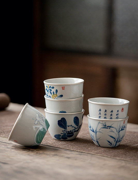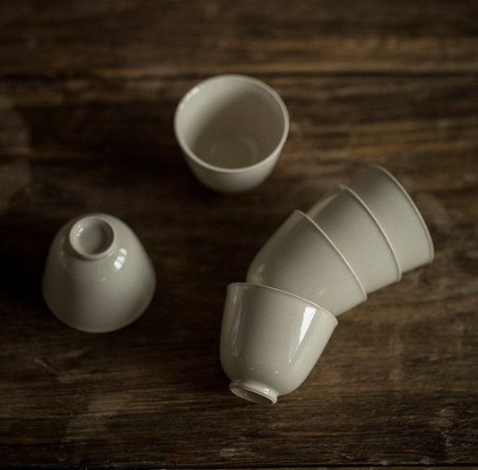 Handmade Porcelain Gongfu Tea Cups | Wood Ash Glaze Ceramic Chinese Tea Cups | Small Tea Cups for Kung Fu Tea Lovers - 4 Styles
