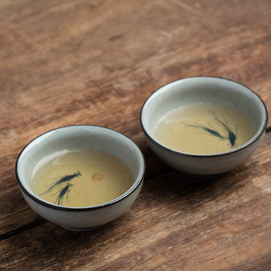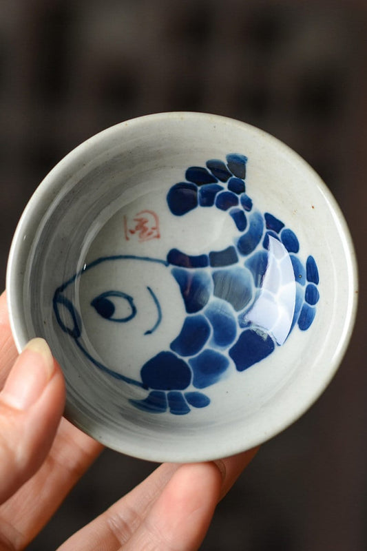 Hand Painted Fish Tea Cup (2oz/60ml), Small Kung Fu Tea Cup, Handmade Pu-Erh Tea Cup | Blue White Chinese Tea Cup | Gift to Tea Lovers