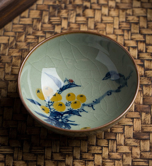 Silver Rim Kungfu Tea Cups 80ml/2.7oz, Hand Painted Chinese Tea Cups, Retro Celadon Glazed, Gongfu Tea Lovers Gift