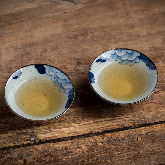 Wood-Fired Gongfu Tea Cups, Hand Painted Blue White Pu-erh Tea Cup 70ml /2.5oz, Chinese tea Cups, 2 Styles, Gift for Kungfu Tea Lovers