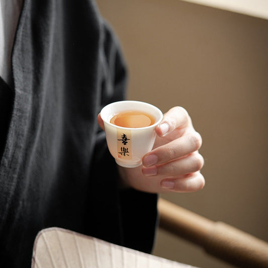 Classic White Porcelain Gung Fu Tea Cup 50ml/1.7oz, Chinese Calligraphy Tea Cups for Gong Fu Tea Ceremony, Small Tea Cups, 5 styles