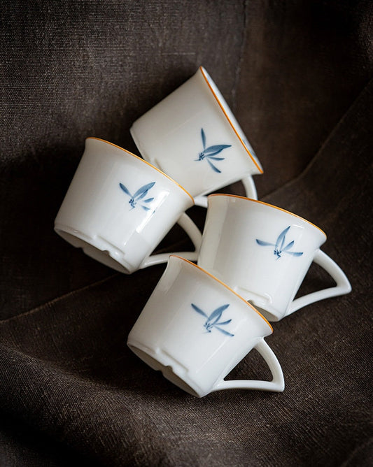 Hand-Painted Orchid Kung Fu Tea Cup with Handle, 55ml/1.86oz - White Porcelain Tea Cups for Gong Fu Tea Ceremony / Small Chinese Tea Cups