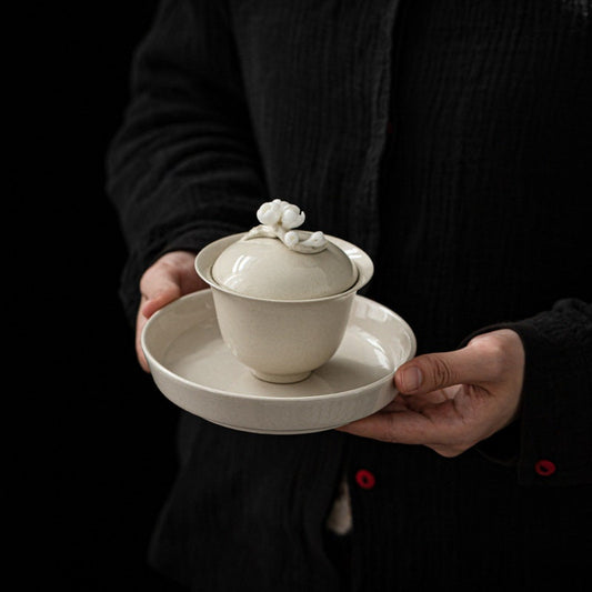 Handmade Porcelain Gaiwan 150ml/5oz | Wood Ash Glaze White Gray Gaiwan | Gaiwan Tea Set | Chinese Kungfu Tea Gaiwan | Tea Cup Sets