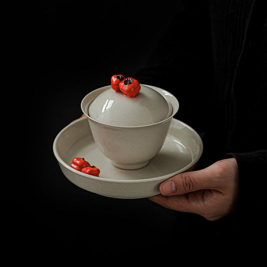 Handmade Persimmon Gaiwan 130ml/4.4oz | Wood Ash Glaze White Gray Gaiwan | Handmade Gaiwan Brewing Kungfu tea | Gongfu tea lover gift