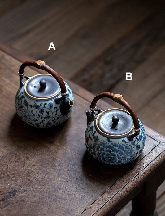 Jingdezhen Hand Painted Blue White Floral Gongfu Teapot 160-180ml/5.4-6oz, Hand Thrown Stoneware Small Teapot, Gift for Kungfu Tea Lovers