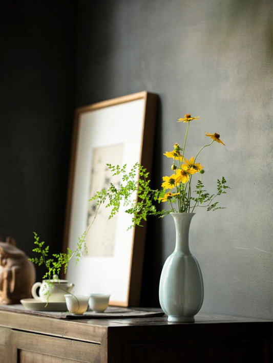 Tea Table Vase, Japanese Chado Table Decor Vase, Chinese Kung Fu Tea Table Decor, Shadowy Green Glaze Porcelain Vase, Tea Lover Gift