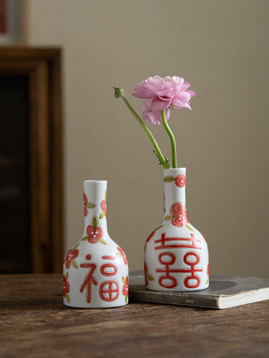 Double happiness small vase, Wedding gift vase, housewarming gift, Hand painted Flower Vase, Kungfu Tea Table Vase, 3 styles, Home Decor