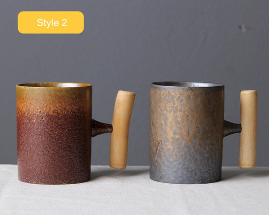 Ceramic Coffee Mug Tea Mug / Japanese Style Mug / Vintage Rust Glazed Ceramic Mug with Wooden Handle / A Good Mug Gift Choice