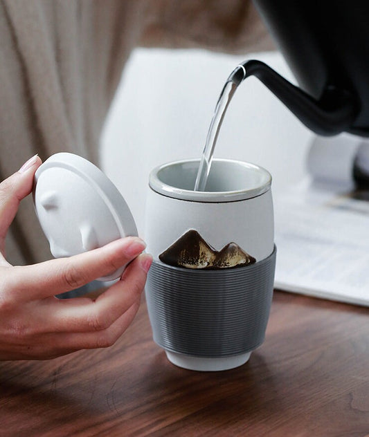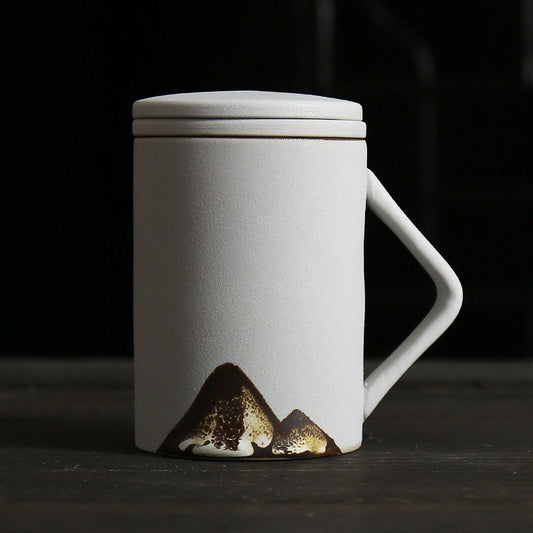 Ceramic Tea Mug 9.5oz ‘Distant Mountains’| Japanese Style Tea Mug |Tea Infuser Mug with Lid| Office Tea Coffee Cup