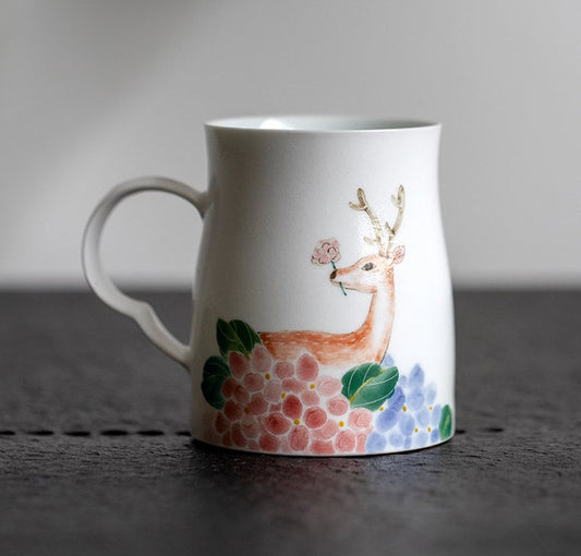 Hand Painted Deer Mug, Large Handmade Coffee Mug, Beautiful Porcelain Mug Gift for her