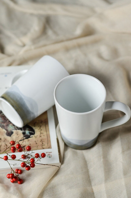 Hand Painted Mountain Mug 390ml/13.2oz, Minimalist Coffee Mug, Mug Set of 2, Beautiful Porcelain Mug Gift for her