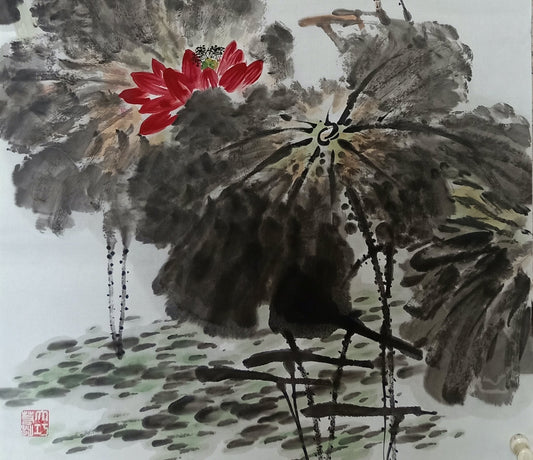 Original Chinese Painting of Lotus, Oriental Watercolor painting, Traditional Chinese ink painting Lotus, Brush painting, Flower Wall Art,