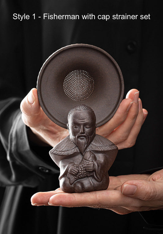 Fisherman Ceramic Tea Strainer For Kungfu Tea, 2 Styles, Tea Strainer Set, Gongfu Tea Ceremony Accessories