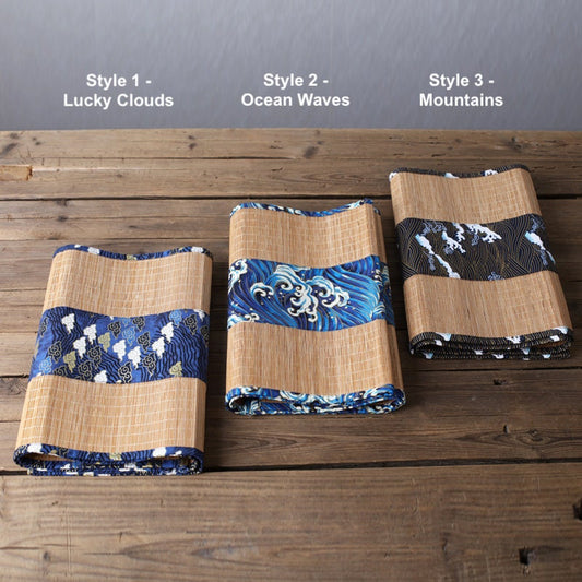 Oriental Style Bamboo Tea Table Runner, 100% Natural Bamboo Table Mat, Kungfu Tea Accessories, 3 Design Multiple Lengths