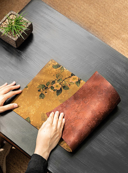 Tea-Silk Tea Table Runner 25x150cm, Aged Gambiered Canton Silk Tea Mats, Natural Dye, Chado Table Runner, Gongfu Tea Accessory, 2 styles