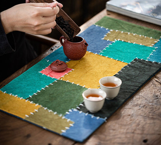 Tea Table Mat 33X33CM, Hand Stitching, Plant Dye Canvas Embroidery Tea Mat, Zen Style Teapot Mat, waterproof, Kungfu Tea Accessories