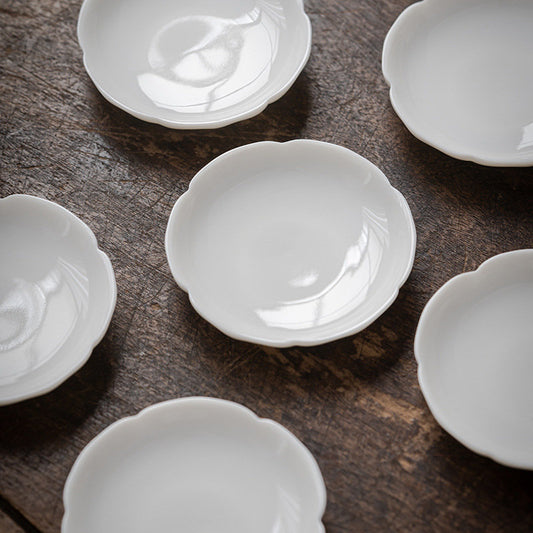 White Porcelain Gongfu Tea Cup Saucer, Tea Cup Coaster, Flower Shape Cup Saucer, Gongfu Tea Ceremony Accessories