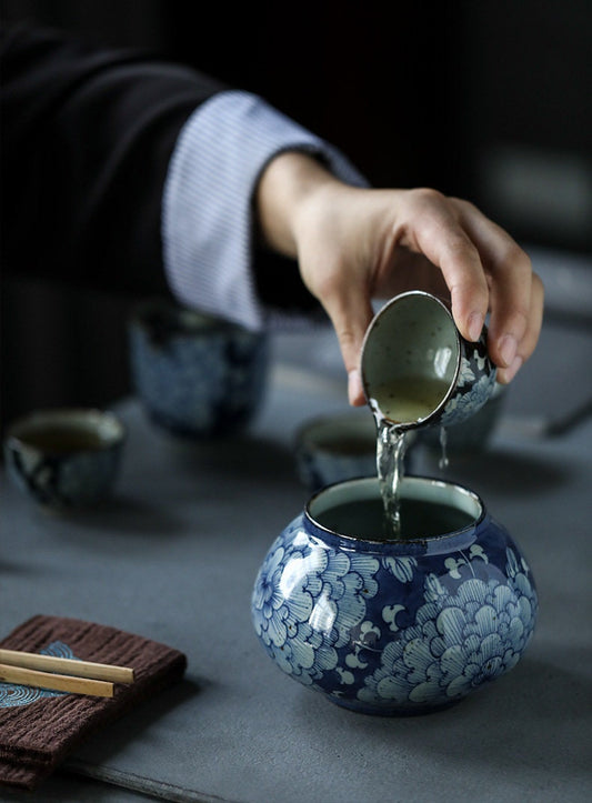 Hand-Thrown Stoneware Tea Basin 800ml/27oz, Hand-Painted Blue White Ceramic Water Basin for Waste Water at Gongfu Tea Session, Jianshui