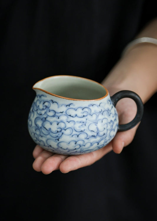 Hand Painted Lucky Clouds Gong Dao Bei (Fairness Cup), Fanggu Style Blue White Tea Pitcher, Cha Hai, Gongfu Tea Accessories - 2 Styles