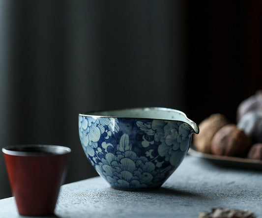 Hand Painted Blue White Floral Gong Dao Bei (Fairness Cup), Fanggu Style Blue White Tea Pitcher, Cha Hai, Gongfu Tea Accessories