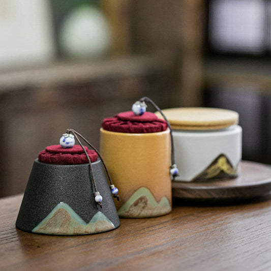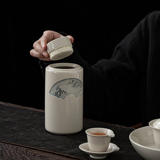 Ceramic Tea Canister ‘Distant Mountains’ | Ceramic Tea Jars |Kung Fu Tea Container| Ceramic Tea Caddy, 3 colors - Black, White and Yellow