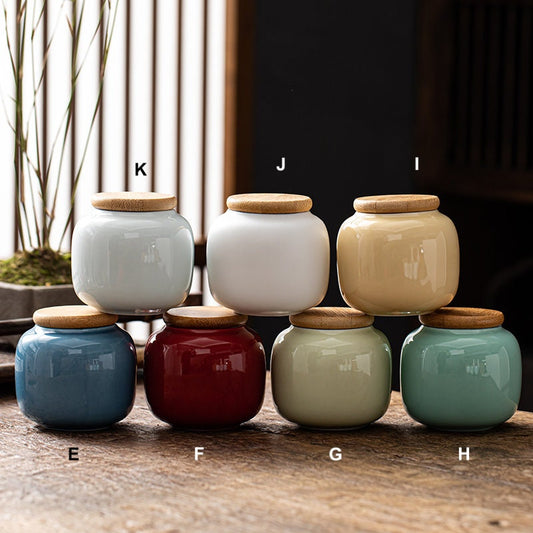 Hand-painted Ceramic Jar for Loose Leaf Teas, Small Tea Tin with Sealed Lid 220ml/7.4oz, Wood Ash Glaze, Tea Caddy, Tea Containers, 6 Styles