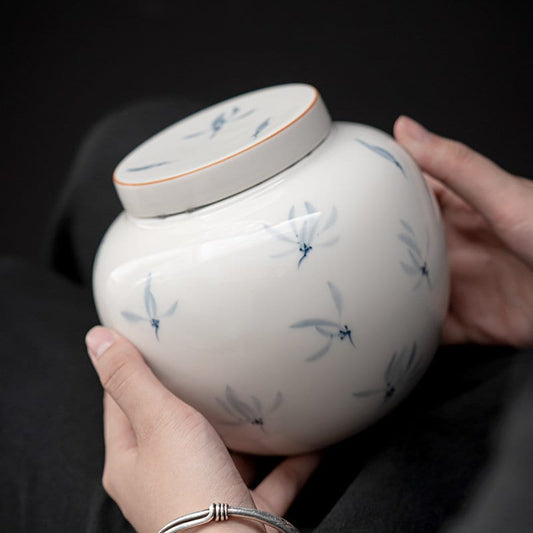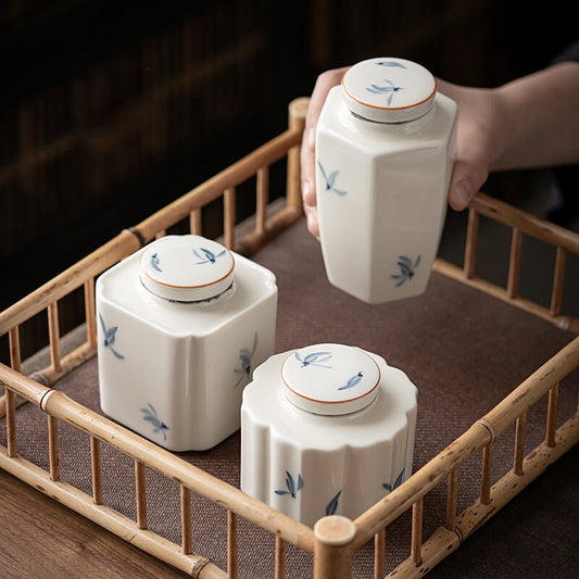 Large Ceramic Canisters 1000ml/33.8oz, Hand Painted, Seale, White Porcelain Tea Jars for Loose Tea Leaf, Tea Containers, Tea Caddy, Tea Tins