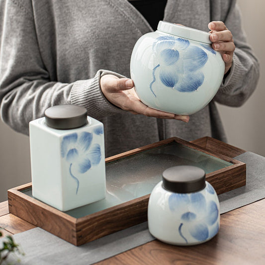 Hand Painted Orchid Ceramic Canister | Canister Set | Sealed Small Tea Jars | Tea Containers | Tea Caddy | Tea Tin, 3 Style, Tea Lovers Gift
