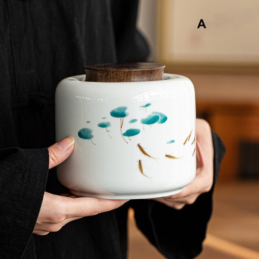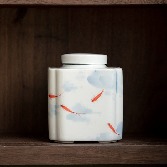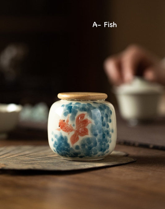 Hand Painted Fish Ceramic Canister | Canister Set | Sealed Small Tea Jars | Tea Containers | Tea Caddy | Tea Tin, 3 Style, Tea Lovers Gift