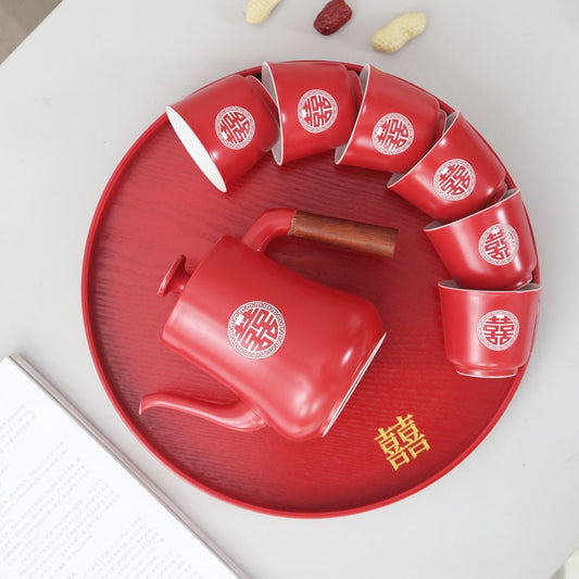 Wedding Tea Ceremony Set, Double Happiness Wedding Teapot Set, Chinese Teapot Set with 1 Teapot, 6 Cups and 1 Tray, Wedding Tea Cups