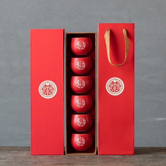 Chinese Wedding Tea Ceremony Cups, Double Happiness Wedding Tea Cups, Red Cups for Chinese Wedding Tea Ceremony, Red Cup Set in Gift Box