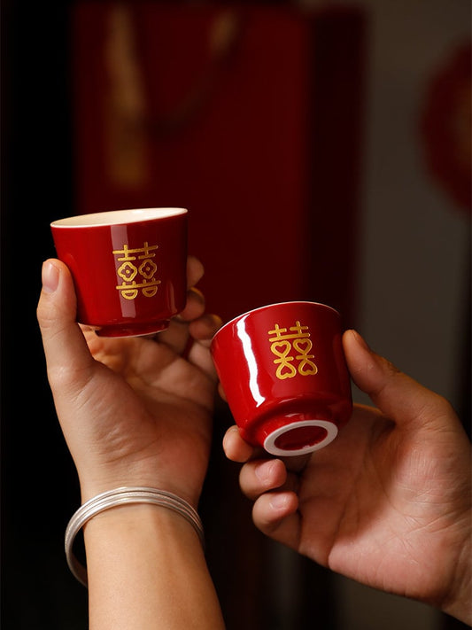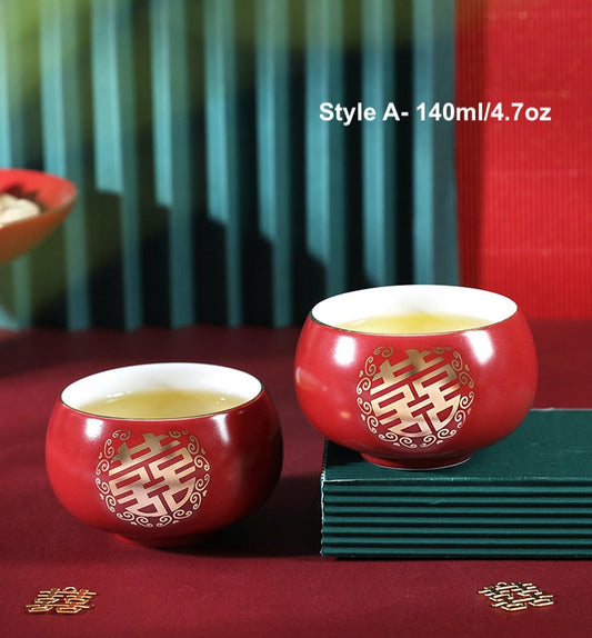 Oriental Wedding Tea Ceremony Cup, Double Happiness Wedding Tea Set, Red Ceramic Tea Cup, Red Cup Set in Gift Box
